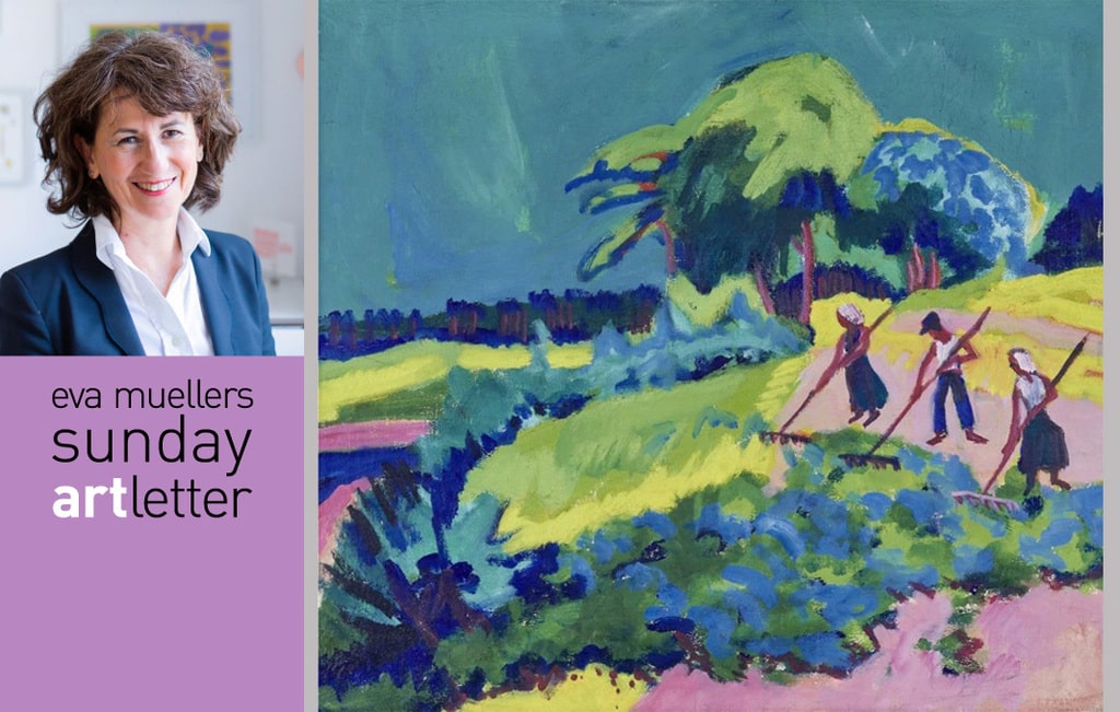Abb. im Header: Landschaft im Gras mit rechenden Bauern von Ernst Ludwig Kirchner, 1924-26, Öl auf Leinwand, Privatbesitz