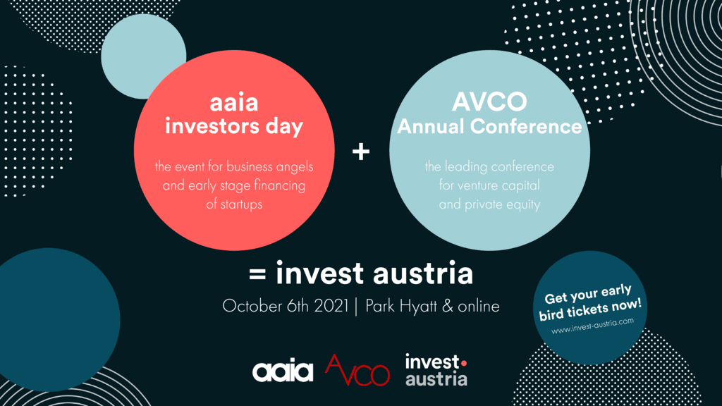 invest austria am 6. Oktober 2021 wird der Hotspot für europäische Business Angels, Private Equity und Venture Capital Investor:innen. Die ganztägige hybride Veranstaltung, organisiert von der Austrian Angel Investors Association (aaia) und der Austrian Private Equity and Venture Capital Organisation (AVCO), bringt den gesamten vorbörslichen Kapitalmarkt zusammen. Hochkarätige, internationale Branchenexpert:innen präsentieren aktuelle Fakten und Trends zu den Themen Startup-Finanzierung, Impact Investing, Mittelstandsfinanzierung, Corporate Innovation und Wachstumsfinanzierung. Bei Keynotes, Podiumsdiskussionen und Roundtables werden wertvolle Insights und Networking-Gelegenheiten geboten.