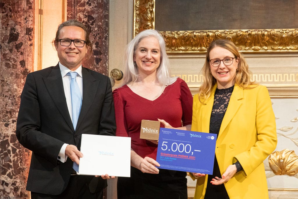 Ob es wohl am Frühling liegt? Derzeit widmet sich alles dem Schwerpunkt „Gründen“ in Österreich: Nur wenige Tage bevor das alljährliche Start-up Monitoring veröffentlicht wird (mehr auf sheconomy.media ab Donnerstag dieser Woche), ging der Gründerpreis Phönix festlich und flott im Haus der Industrie, Sitz der österreichischen Industriellenvereinigung, über die Bühne. Der Wettbewerb, einmal im Jahr im Auftrag des Bundesministeriums für Bildung, Wissenschaft und Forschung und des Bundesministeriums für Digitalisierung und Wirtschaftsstandort veranstaltet, stellt einige der die besten Start-ups, Spin-offs und Prototypen des Landes einem breiteren Publikum vor. Feierlich überreicht wurden die Preise von Digitalisierungs- und Wirtschaftsministerin Margarete Schramböck und Wissenschaftsminister Martin Polaschek.