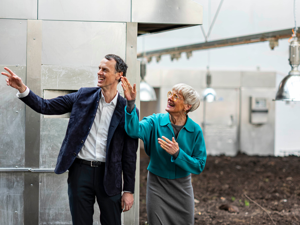 Katharina Keller: Es ist uns wichtig, die Menschen zu erreichen, indem wir ihnen die Kunst, die wir ausstellen, erlebbar machen. Wir suchen Themen, die alle Menschen beschäftigen, wir wollen nicht elitär sein. Die Arbeiten sind meist für eine begrenzte Zeit Teil des öffentlichen Raums. Aber natürlich schauen wir auch, welche Künstler:innen zum Unternehmen passen. In der aktuellen Ausstellung spielen die Kunstschaffenden mit der besonderen Architektur des ehemaligen Backhauses, etwa wie der Künstler Hans Schabus, der eine riesige Menge Mutterboden in der Installation „Schwerkraft der Verhältnisse“ in der großen ehemaligen Produktionshalle eingebracht hat.