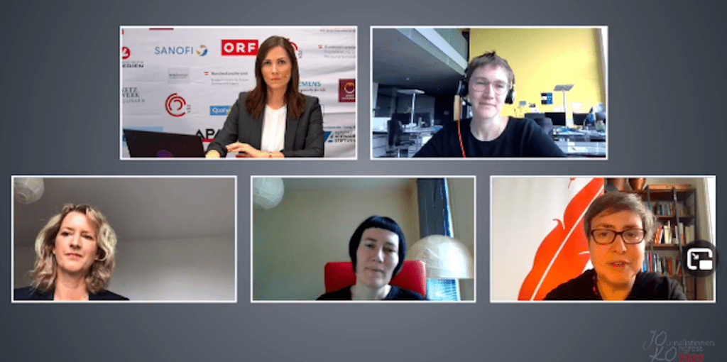 »Neues Spiel – neue Regeln« lautete das übergeordnete Thema des diesjährigen Journalistinnenkongresses, der in diesem Jahr online abgehalten wurde. Dass die Spielregeln, die den österreichischen Journalismus auch in diesem schwierigen Jahr bestimmt haben, nach wie vor zum Großteil von Männern gemacht werden, erwähnte Alexandra Wachter, Journalistin und Vorsitzende des Frauennetzwerks Medien, gleich zu Beginn der Veranstaltung. Um immer wieder darauf hinzuweisen und bestenfalls auch gleich entsprechende Schritte in die Gegenrichtung zu setzen, brauche es viele starke Frauenstimmen und Veranstaltungen wie den Journalistinnenkongress. Der Blick in die immer noch stark männlich dominierten Chefredaktionen der österreichischen Medienhäuser bestätigt dieses Bild sofort. Obwohl die Digitalisierung gerne mit einer Art Gleichstellungsmotor verglichen wird, hat sich auch durch die Krise nichts daran geändert, dass Männerstimmen in den österreichischen Medien immer noch um ein Vielfaches präsenter sind. Im Gegenteil: Untersuchungen zeigen ganz deutlich, dass in der Krise hauptsächlich Männer ihre Erklärungen dazu abgaben. Außerdem war schnell klar, dass Kinderbetreuung und Homeschooling in erster Linie bei den Frauen landen würden.