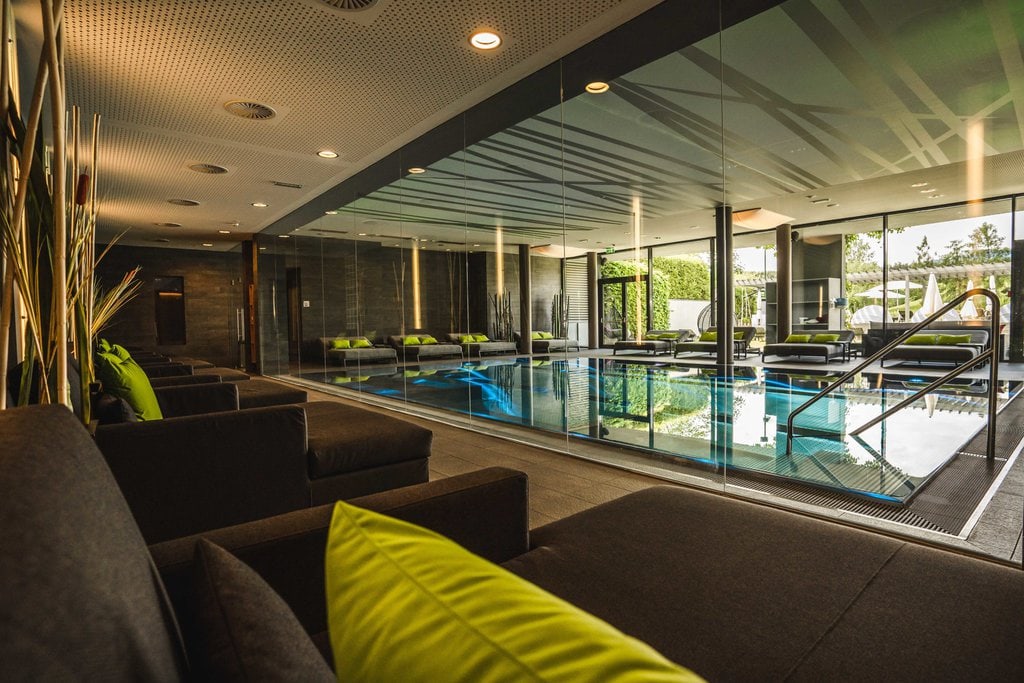 Zwischen den zwei Gebäuden, die das Hotel umfasst (Haus am See und Haus am Schloss), liegt der Ritzenhof Spa. Die unterirdisch angelegte Wellnessoase öffnet sich direkt zum Ufer des Ritzensees mit einer privaten Liegewiese – dem Place to be in der warmen Jahreszeit. Hier wählt man seinen Lieblingsplatz aus gemütlichen Himmelbetten und Muschelliegen und übt sich im süßen Nichtstun, das Schilfrauschen im Ohr.